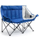 Details: Relax with 2 people in the shade with this double sized camp chair with removable umbrella. The overrall chairs measure 57"L x 20.5"W x 37"H and has a convenient cooler bag. The weight capacity is 260lbs. Per chair or 520lbs. Total. The frame is steel tube with black powder coating. The fabric is sturdy 600D oxford and 210D for the carry bag. The chairs fold for easy transport and storage. Take to the beach, camping, picnic or your favorite sporting event. By Trademark Innovations.