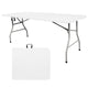 - 👍【FOLDING & PORTABLE】No assembly required. This 6 foot folding table folds in the center, locks closed, and is compact and easy to store. Comes with a comfortable carry handle for better portability.You can put the folding table in the trunk, and then go on a picnic trip with your friends.Plan for your next social gathering with this 6-foot plastic folding table.