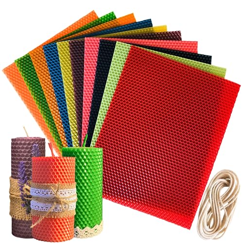 Details: ✅ Beeswax candle making kit includes 10 sheets that measure 10" x 8". 100% beeswax honeycomb sheets in assorted colors with a 7 feet cotton wick. Create your own beeswax candles or interesting kid`s craft project!