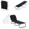 Details: Our new foldable chaise lounge chair is built strong, built comfortable, and built to last! This sun lounge chair is great for all types of outdoor use (and indoor use, too!). This patio chair is designed to be extra-long, so there's no more worrying about your feet hanging off the edge. At 74.75" long by 22" wide, there’s plenty of room to rest. We utilize reinforced high-quality steel and they are constructed using heavy-duty Oxford cloth material, so you can depend on this patio chair lasting you and your family a long time! Being easy to set up and takedown, these patio chair loungers make camping or relaxing by the pool a breeze and are great for any outdoor or indoor use. Features: - Built on a powder-coated steel frame with 3 set of supporting legs for extra sturdy - Full reclining, 3-level adjustable backrest for personalized comfort - Durable Oxford fabric fight water, is breathable, and is super comfortable - Full length so you can have your whole body lying on the bed - Portable and lightweight for easy storage and transport - Perfect for camping, hiking, poolside, or the beach Specifications: - Color: Black - Material: Steel, Oxford Fabric - Flat Dimension: 74.75" L x 22" W x 11" H - Folded Dimension: 31.5" L x 22.75" W x 5.75" H - Weight Capacity: 265 lbs.