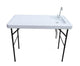 Details: This 4-Foot Fill N Chill Table as an innovative design can be used for so many different functions. Ideal as an open top cooler, or can be used for a variety of cleaning applications. The center drain prevents water build up, and the heavy duty plastic is long lasting and cleans easily. No tools required; simply lock the hinges in place. Assembled Dimensions: 49. 8"Lx25. 6"Wx37. 2"H.