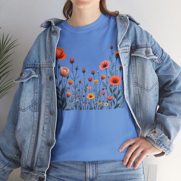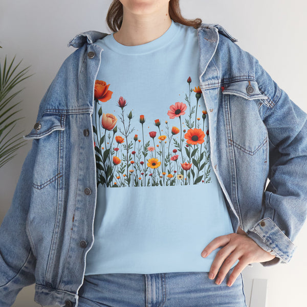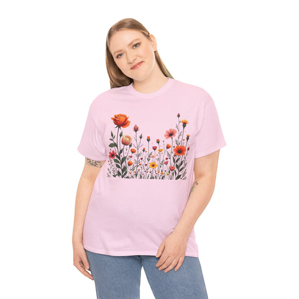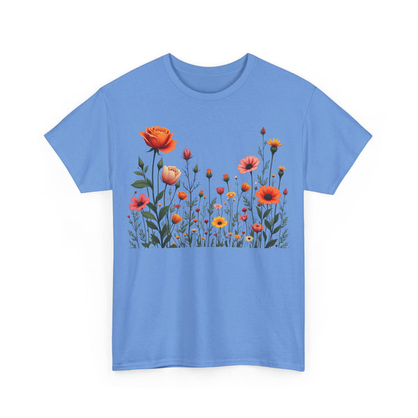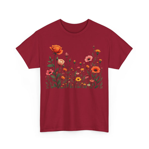 Isn’t comfort and style the ultimate combination? This floral top is a wardrobe essential unlike any other! This wildflower graphic is beautifully accentuated with orange roses. Ladies, these graphic tees for women are a go to if you prefer looking effortlessly stylish. Reasons To Love It Soft And Breathable Fabric: The material of this womens short sleeve T Shirt is soft and relaxing, making it perfect for everyday use and any occasion. Floral Elegance: The feminine touch of the elegant and trendy floral design is equally bold and subtle in this womens T shirt.