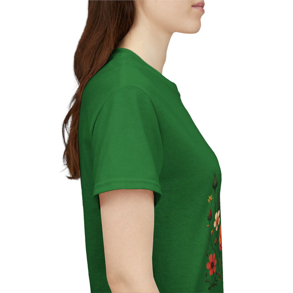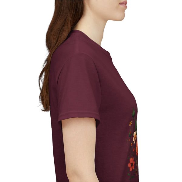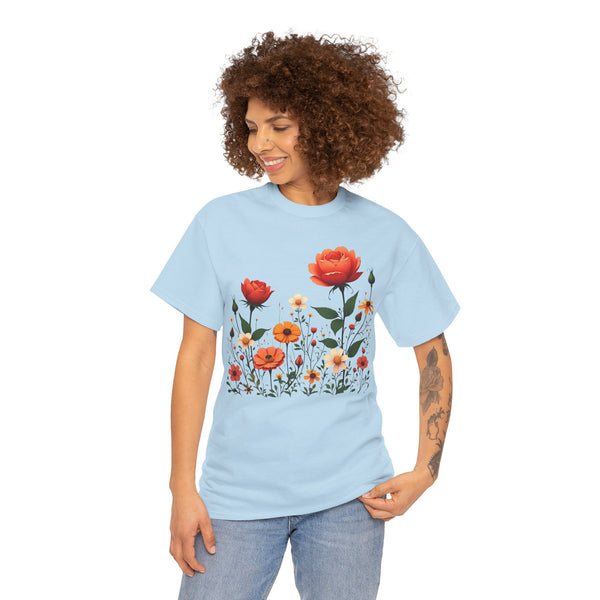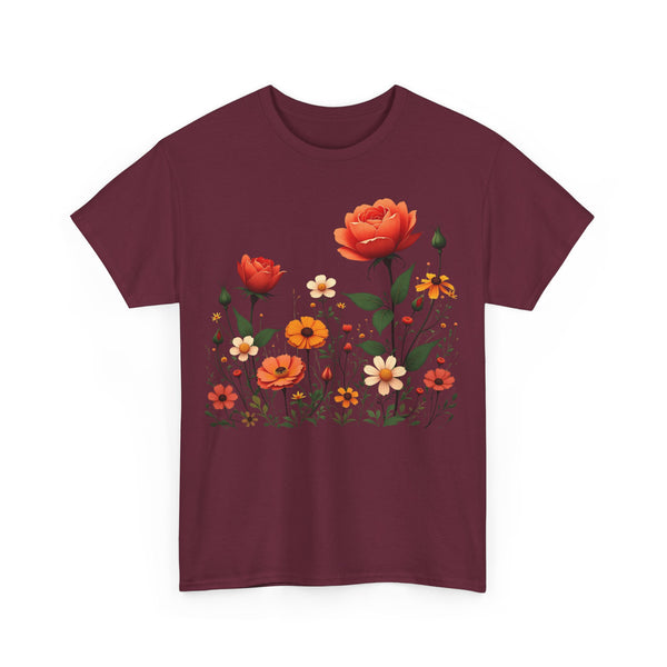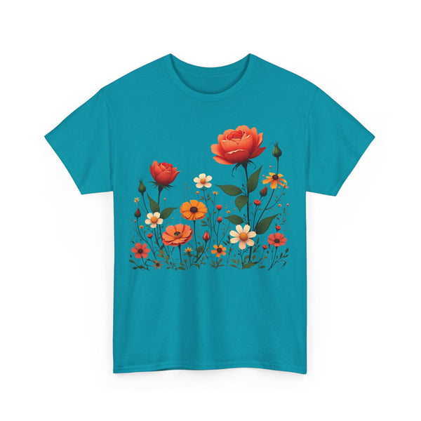 Isn’t comfort and style the ultimate combination? This floral top is a wardrobe essential unlike any other! This wildflower graphic is beautifully accentuated with orange roses. Ladies, these graphic tees for women are a go to if you prefer looking effortlessly stylish. Reasons To Love It Soft And Breathable Fabric: The material of this womens short sleeve T Shirt is soft and relaxing, making it perfect for everyday use and any occasion. Floral Elegance: The feminine touch of the elegant and trendy floral design is equally bold and subtle in this womens T shirt.