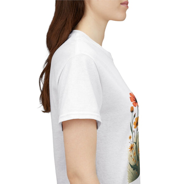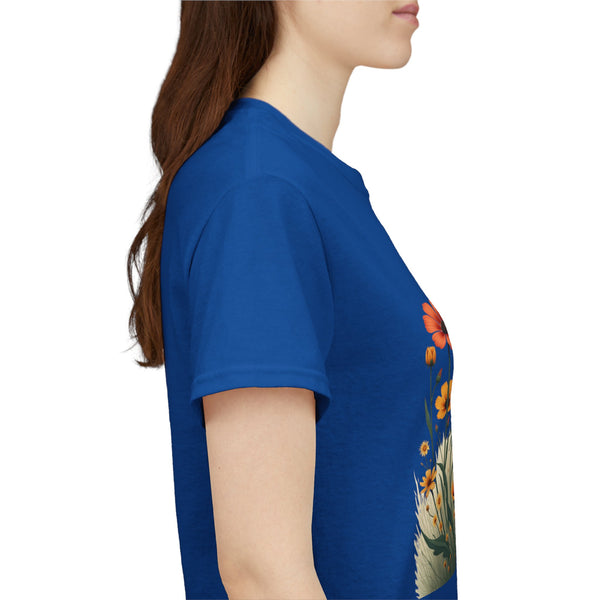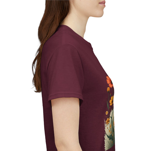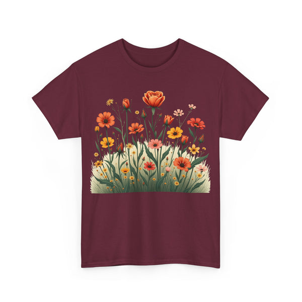Isn’t comfort and style the ultimate combination? This floral top is a wardrobe essential unlike any other! This wildflower graphic is beautifully accentuated with orange roses. Ladies, these graphic tees for women are a go to if you prefer looking effortlessly stylish. Reasons To Love It Soft And Breathable Fabric: The material of this womens short sleeve T Shirt is soft and relaxing, making it perfect for everyday use and any occasion. Floral Elegance: The feminine touch of the elegant and trendy floral design is equally bold and subtle in this womens T shirt.