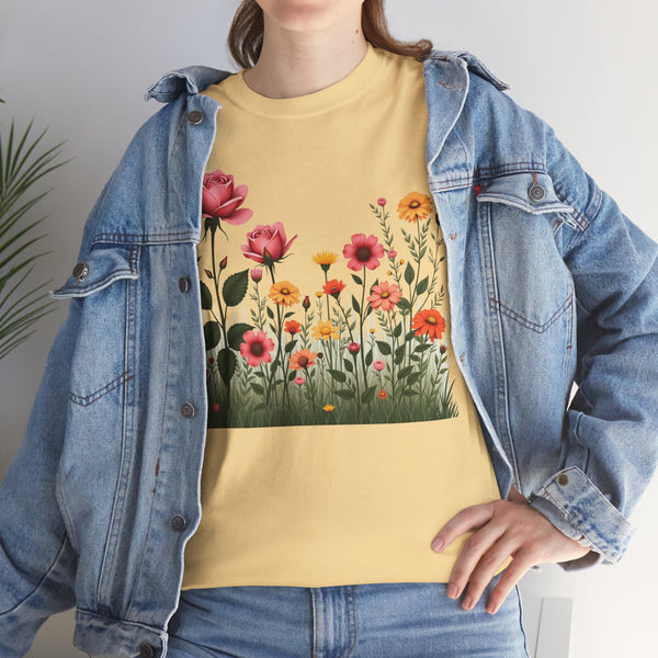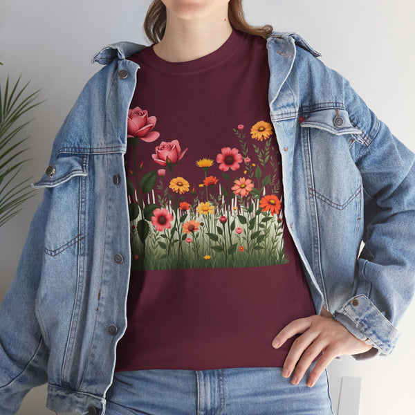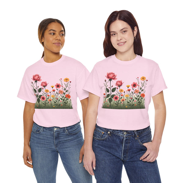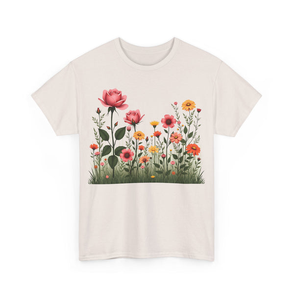 Perfect Fit: This shirt for women has a relaxed fit that flatters every woman. Therefore, no matter if you prefer jeans, skirts or shorts, you will look effortlessly stylish. Versatile Style: This floral shirt will elevate your look be it brunch, running a few errands or spending a casual day out. Ensure to clear a spot for this masterpiece in your wardrobe. The Wildflower and Pink Roses Graphic T Shirt for women allows you to connect with nature adding a bit of it to your daily outfits. Shop now from our collection of ladies graphic tees to get the perfect look!