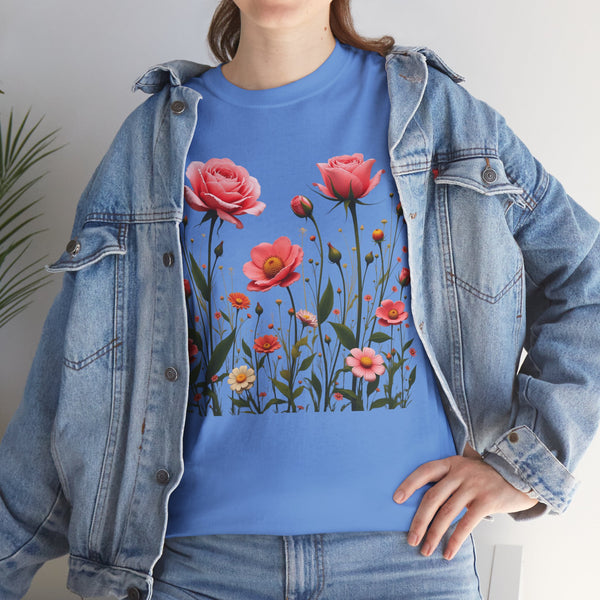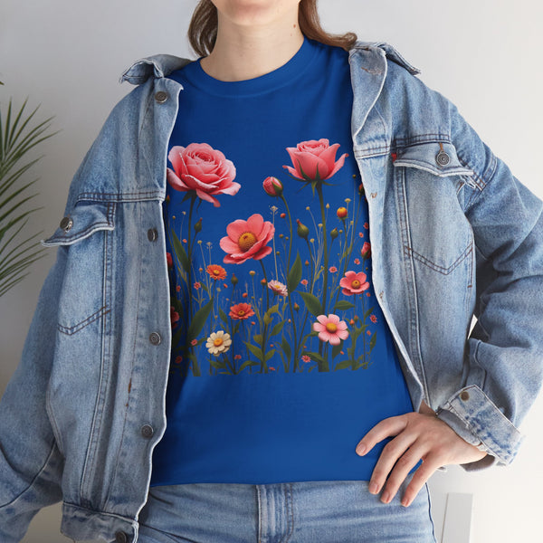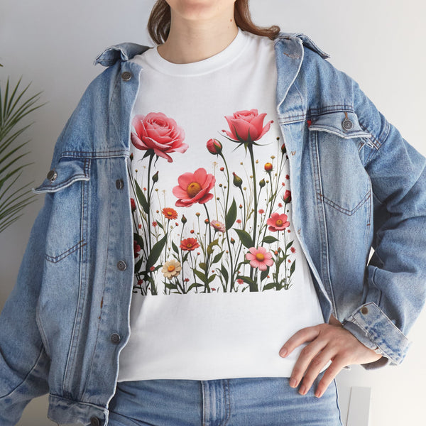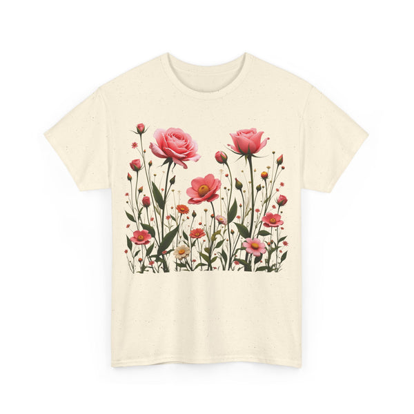 Perfect Fit: This shirt for women has a relaxed fit that flatters every woman. Therefore, no matter if you prefer jeans, skirts or shorts, you will look effortlessly stylish. Versatile Style: This floral shirt will elevate your look be it brunch, running a few errands or spending a casual day out. Ensure to clear a spot for this masterpiece in your wardrobe. The Wildflower and Pink Roses Graphic T Shirt for women allows you to connect with nature adding a bit of it to your daily outfits. Shop now from our collection of ladies graphic tees to get the perfect look!