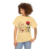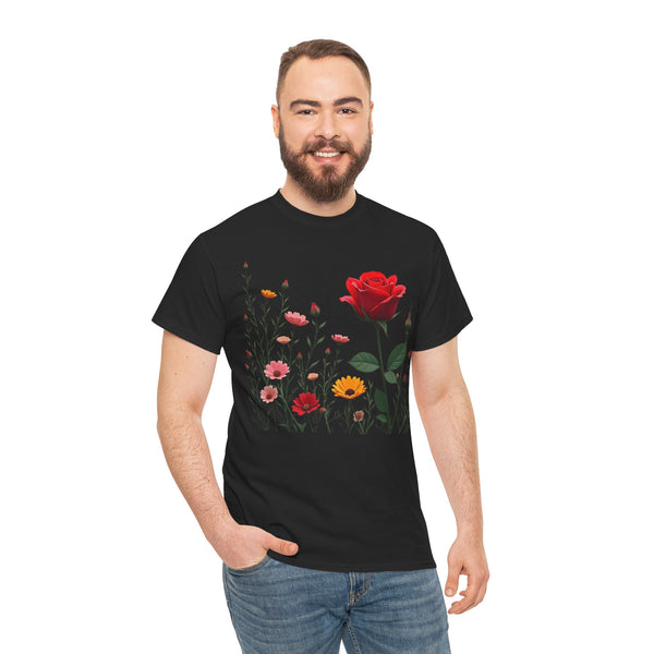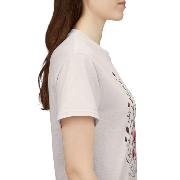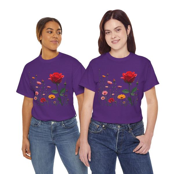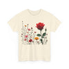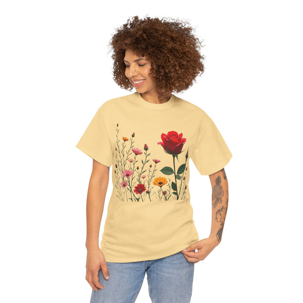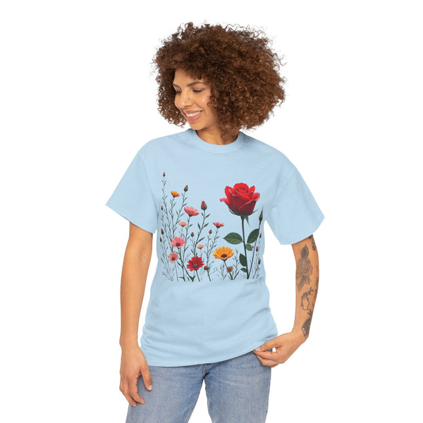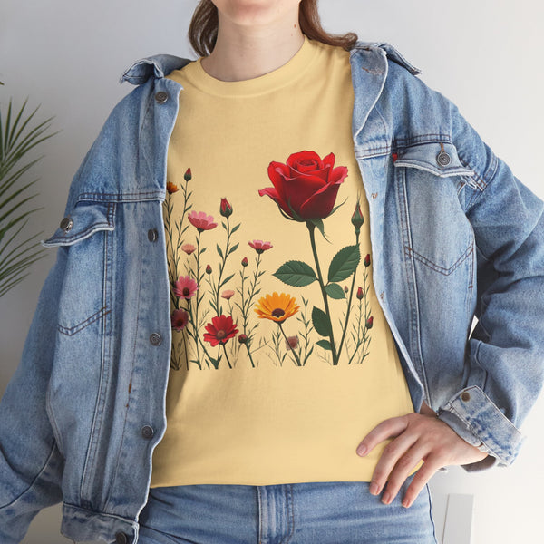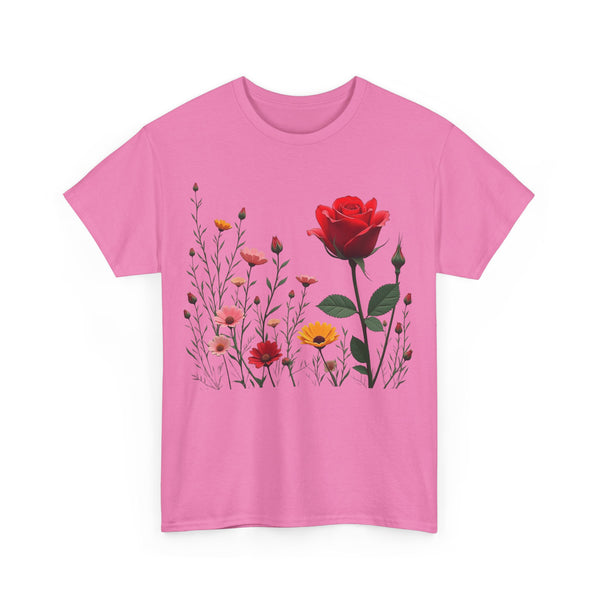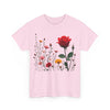 Isn’t comfort and style the ultimate combination? This floral top is a wardrobe essential unlike any other! This wildflower graphic is beautifully accentuated with a red rose. Ladies, these graphic tees for women are a go to if you prefer looking effortlessly stylish. Reasons To Love It Soft And Breathable Fabric: The material of this womens short sleeve T Shirt is soft and relaxing, making it perfect for everyday use and any occasion. Floral Elegance: The feminine touch of the elegant and trendy floral design is equally bold and subtle in this womens T shirt.
