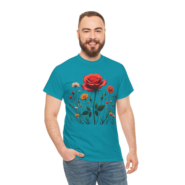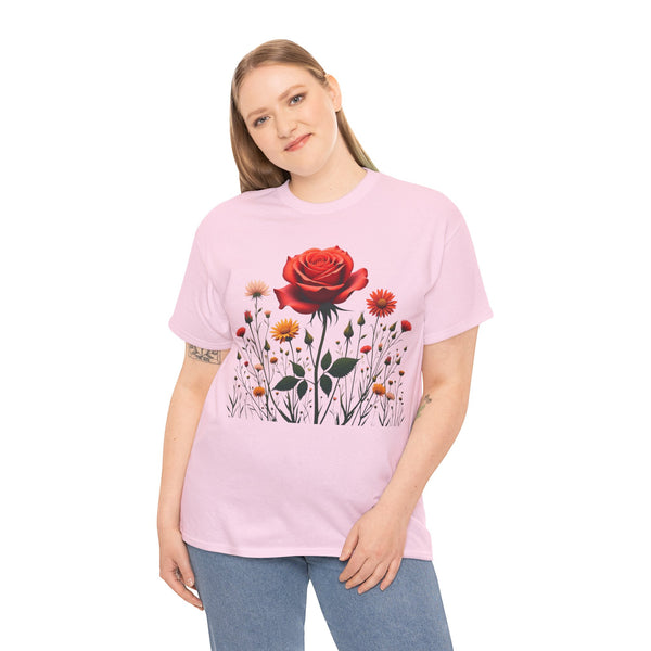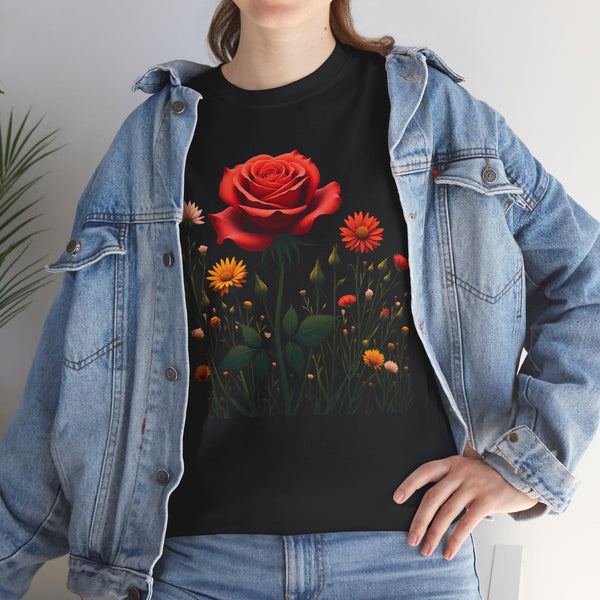 Isn’t comfort and style the ultimate combination? This floral top is a wardrobe essential unlike any other! This wildflower graphic is beautifully accentuated with a red rose. Ladies, these graphic tees for women are a go to if you prefer looking effortlessly stylish. Reasons To Love It Soft And Breathable Fabric: The material of this womens short sleeve T Shirt is soft and relaxing, making it perfect for everyday use and any occasion. Floral Elegance: The feminine touch of the elegant and trendy floral design is equally bold and subtle in this womens T shirt.