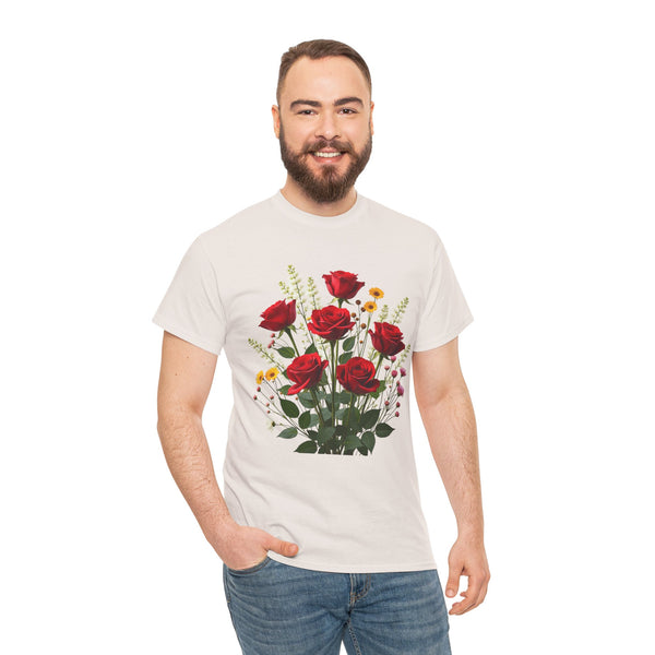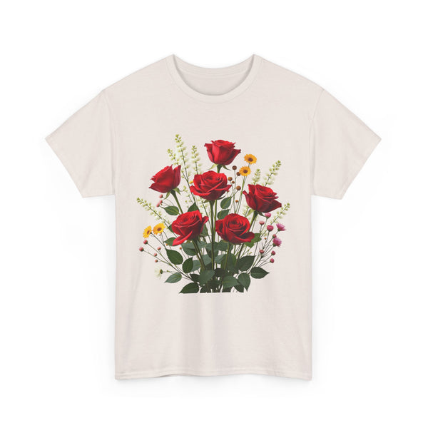 Perfect Fit: This shirt for women has a relaxed fit that flatters every woman. Therefore, no matter if you prefer jeans, skirts or shorts, you will look effortlessly stylish. Versatile Style: This floral shirt will elevate your look be it brunch, running a few errands or spending a casual day out. Ensure to clear a spot for this masterpiece in your wardrobe. The Wildflower and Red Roses Graphic T Shirt for women allows you to connect with nature adding a bit of it to your daily outfits. Shop now from our collection of ladies graphic tees to get the perfect look!
