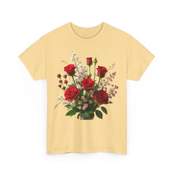 Perfect Fit: This shirt for women has a relaxed fit that flatters every woman. Therefore, no matter if you prefer jeans, skirts or shorts, you will look effortlessly stylish. Versatile Style: This floral shirt will elevate your look be it brunch, running a few errands or spending a casual day out. Ensure to clear a spot for this masterpiece in your wardrobe. The Wildflower and Red Roses Graphic T Shirt for women allows you to connect with nature adding a bit of it to your daily outfits. Shop now from our collection of ladies graphic tees to get the perfect look!