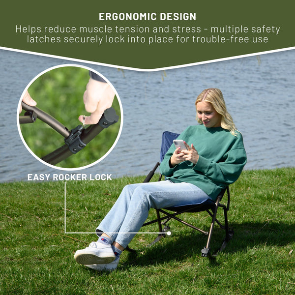 - CONVENIENT OUTDOOR ROCKING CHAIR: Ideal for camping, sporting events, fishing, and other outdoor activities, this smooth rocking motion chair is also adjustable to a stationary lean-back position for ultimate comfort.