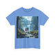 A classic fit T-shirt made from medium fabric, featuring an image of a woman in a red dress sitting on a wood bench at the beach under a tree with the caption 'Have you forgiven your Ex'. This design suggests forgiveness and moving on from past relationships. Perfect for adults looking for a comfortable and stylish tee with a meaningful message. Style #5002STS