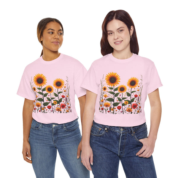 Sunflowers & Wildflowers, Graphic T-Shirts for Women, Floral Shirt, Womens Short Sleeve, Ladies Graphic Tees #5154TTS