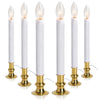 Details: Tudak 6 Pack of electric candles are great for centerpieces, window candles, weddings, restaurants, table decor, party decorations and home decor. These dusk to dawn electric window candles go on when dark and go off when light out. Long lasting and reusable with attractive brass plated metal base! Extra long 5 foot white power cord with fused and polarized safety plug. Brand new in color box with light bulb installed ready to use. UL certified for indoor use only.