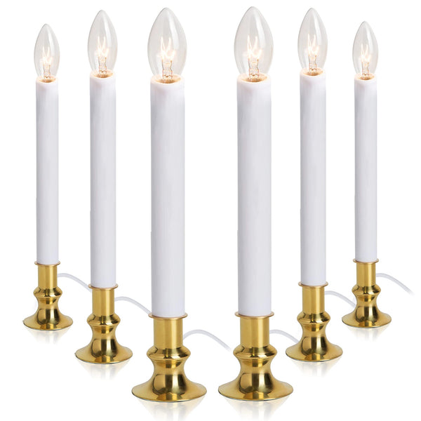 - VALUE SET OF 6 CANDLE LAMPS – Perfect for displaying in multiple windows of your home, this value pack includes 6 electric lamp candles. Great for adding some mood lighting to a dark room and makes perfect window Christmas lights for a cheery winter season.