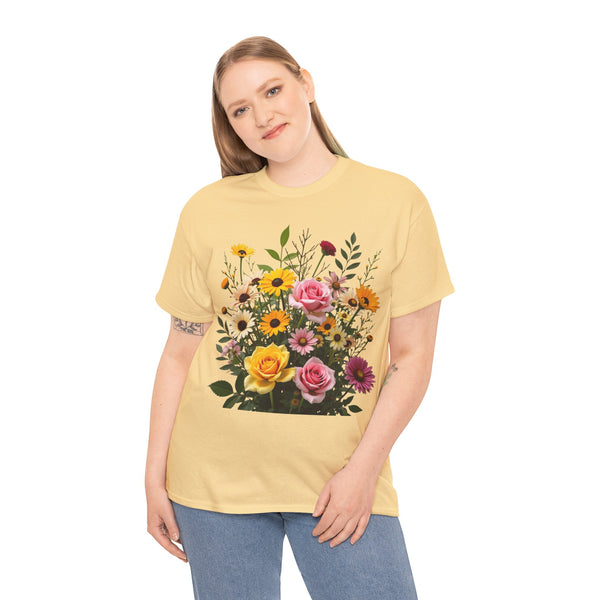 Perfect Fit: This shirt for women has a relaxed fit that flatters every woman. Therefore, no matter if you prefer jeans, skirts or shorts, you will look effortlessly stylish. Versatile Style: This floral shirt will elevate your look be it brunch, running a few errands or spending a casual day out. Ensure to clear a spot for this masterpiece in your wardrobe. The Wildflower and Pink/Yellow Roses Graphic T Shirt for women allows you to connect with nature adding a bit of it to your daily outfits. Shop now from our collection of ladies graphic tees to get the perfect look!