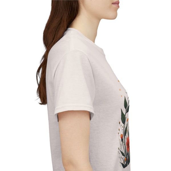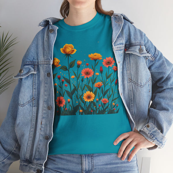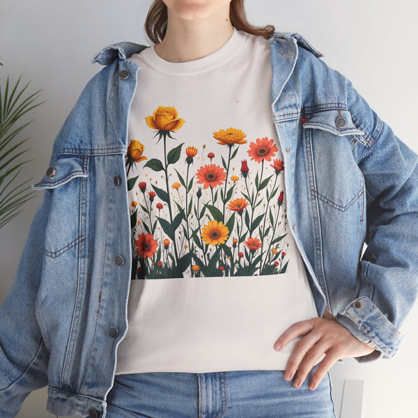 Isn’t comfort and style the ultimate combination? This floral top is a wardrobe essential unlike any other! This wildflower graphic is beautifully accentuated with yellow roses. Ladies, these graphic tees for women are a go to if you prefer looking effortlessly stylish. Reasons To Love It Soft And Breathable Fabric: The material of this womens short sleeve T Shirt is soft and relaxing, making it perfect for everyday use and any occasion. Floral Elegance: The feminine touch of the elegant and trendy floral design is equally bold and subtle in this womens T shirt.