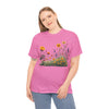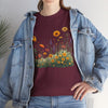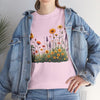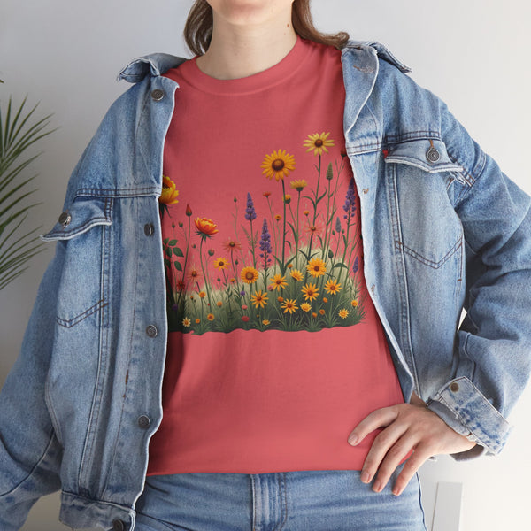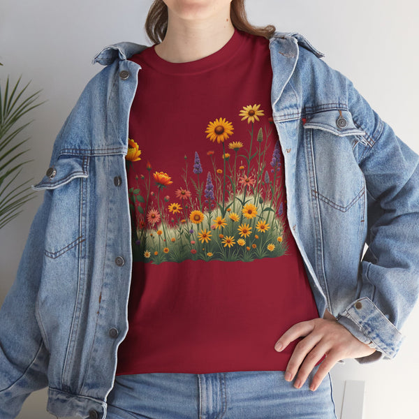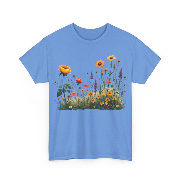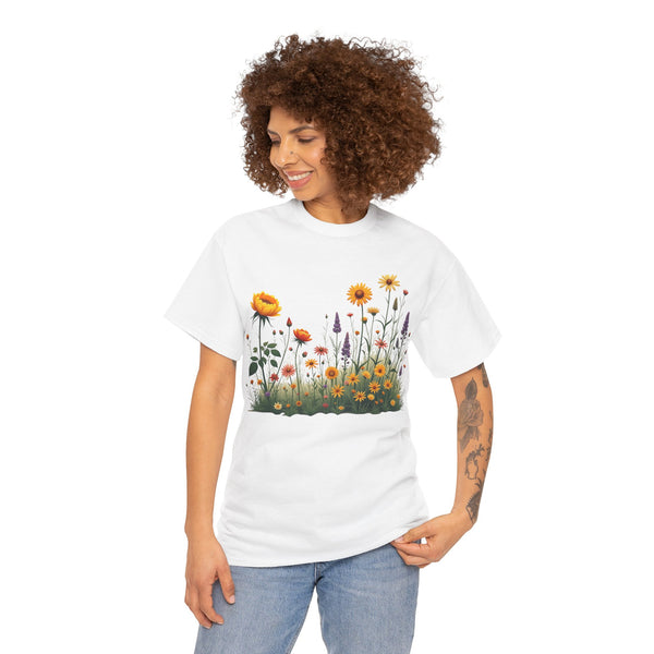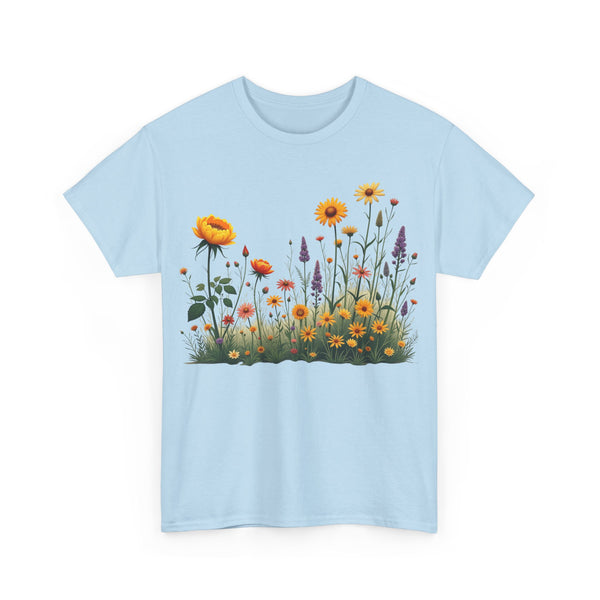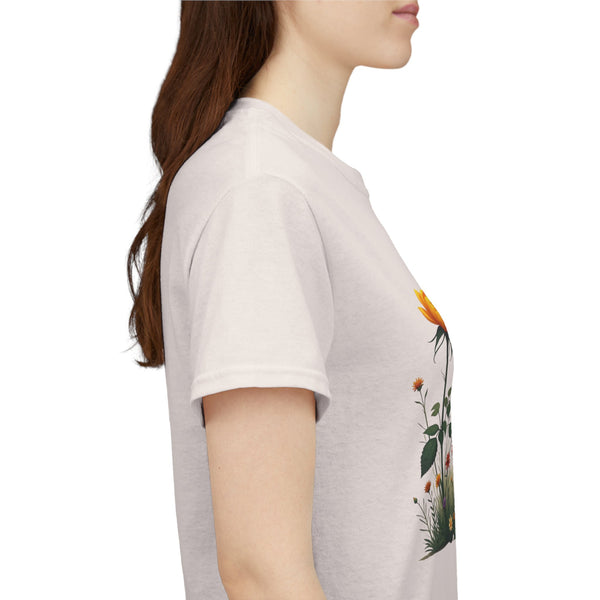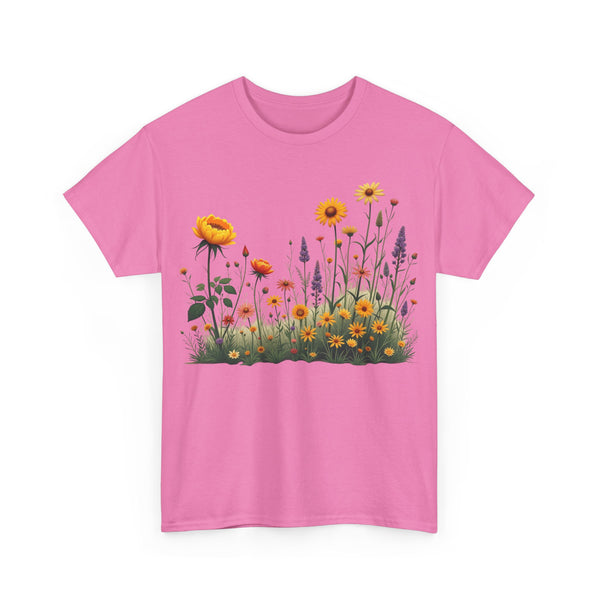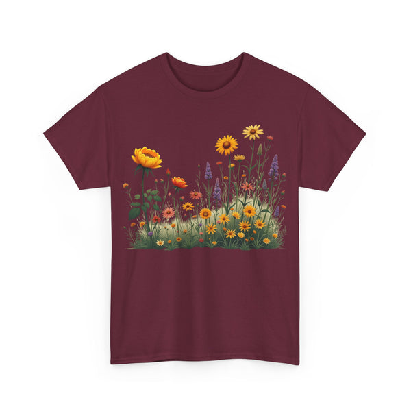 Isn’t comfort and style the ultimate combination? This floral top is a wardrobe essential unlike any other! This wildflower graphic is beautifully accentuated with yellow roses. Ladies, these graphic tees for women are a go to if you prefer looking effortlessly stylish. Reasons To Love It Soft And Breathable Fabric: The material of this womens short sleeve T Shirt is soft and relaxing, making it perfect for everyday use and any occasion. Floral Elegance: The feminine touch of the elegant and trendy floral design is equally bold and subtle in this womens T shirt.
