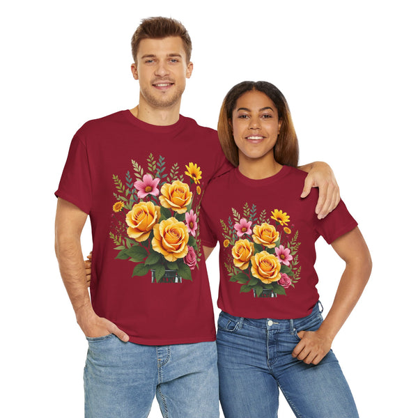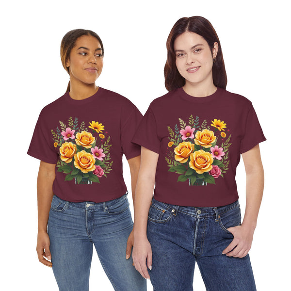 Perfect Fit: This shirt for women has a relaxed fit that flatters every woman. Therefore, no matter if you prefer jeans, skirts or shorts, you will look effortlessly stylish. Versatile Style: This floral shirt will elevate your look be it brunch, running a few errands or spending a casual day out. Ensure to clear a spot for this masterpiece in your wardrobe. The Wildflower and Yellow Roses Graphic T Shirt for women allows you to connect with nature adding a bit of it to your daily outfits. Shop now from our collection of ladies graphic tees to get the perfect look!