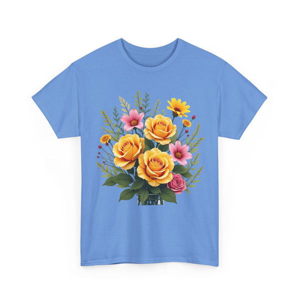 Isn’t comfort and style the ultimate combination? This floral top is a wardrobe essential unlike any other! This wildflower graphic is beautifully accentuated with yellow roses. Ladies, these graphic tees for women are a go to if you prefer looking effortlessly stylish. Reasons To Love It Soft And Breathable Fabric: The material of this womens short sleeve T Shirt is soft and relaxing, making it perfect for everyday use and any occasion. Floral Elegance: The feminine touch of the elegant and trendy floral design is equally bold and subtle in this womens T shirt.