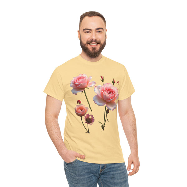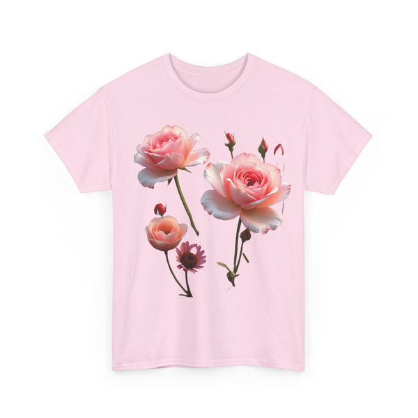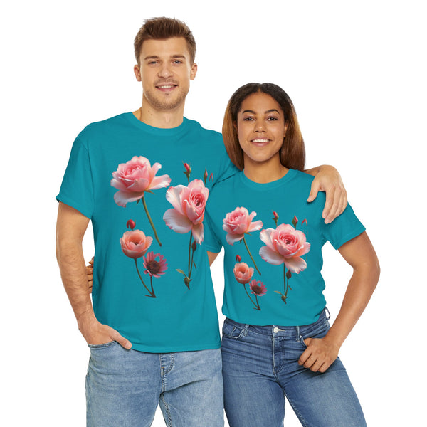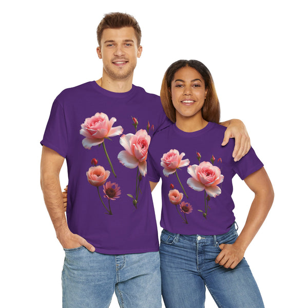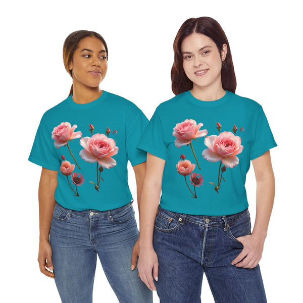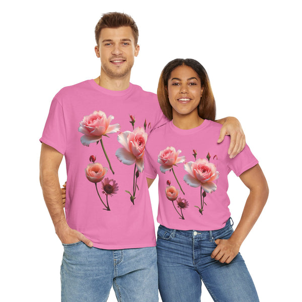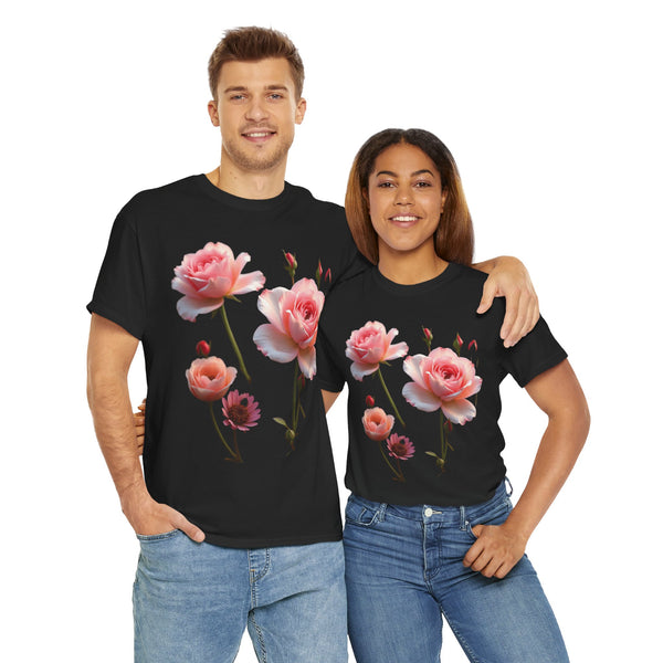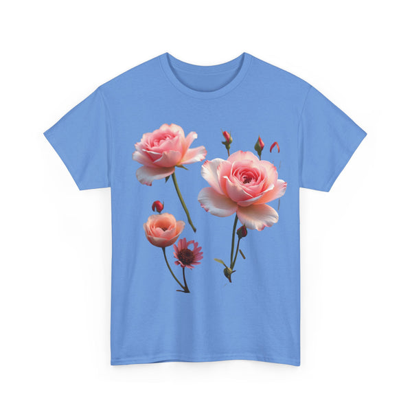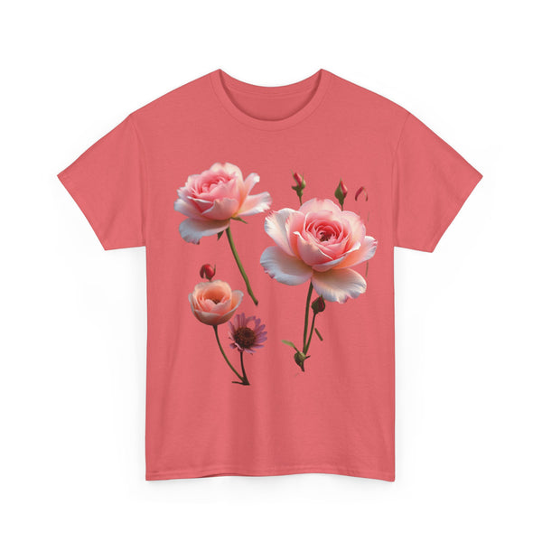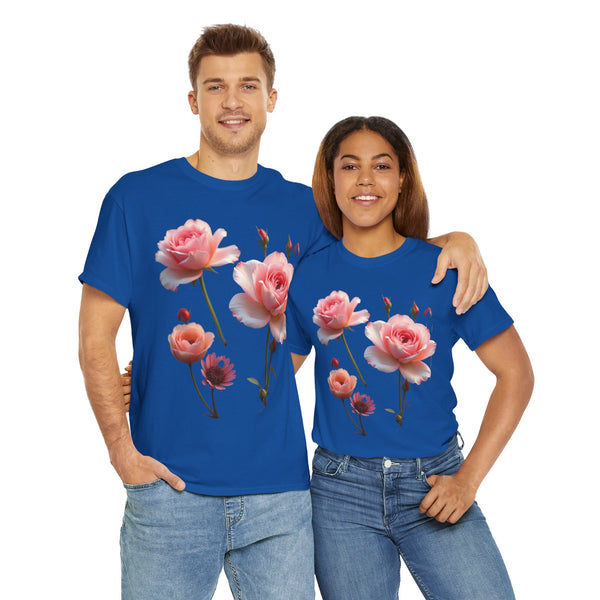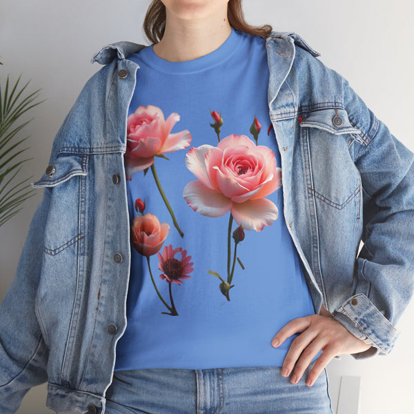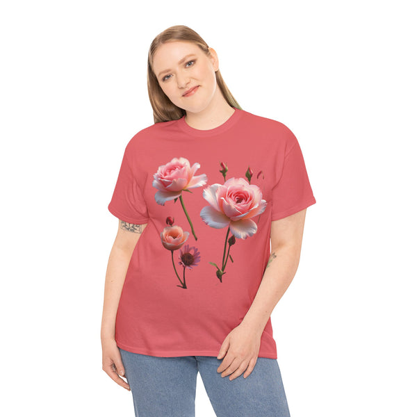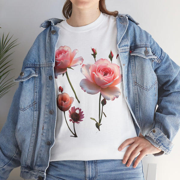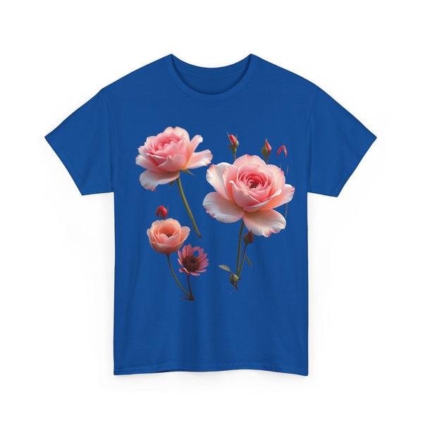 Perfect Fit: This shirt for women has a relaxed fit that flatters every woman. Therefore, no matter if you prefer jeans, skirts or shorts, you will look effortlessly stylish. Versatile Style: This floral shirt will elevate your look be it brunch, running a few errands or spending a casual day out. Ensure to clear a spot for this masterpiece in your wardrobe. The Wildflower and Pink Roses Graphic T Shirt for women allows you to connect with nature adding a bit of it to your daily outfits. Shop now from our collection of ladies graphic tees to get the perfect look!