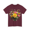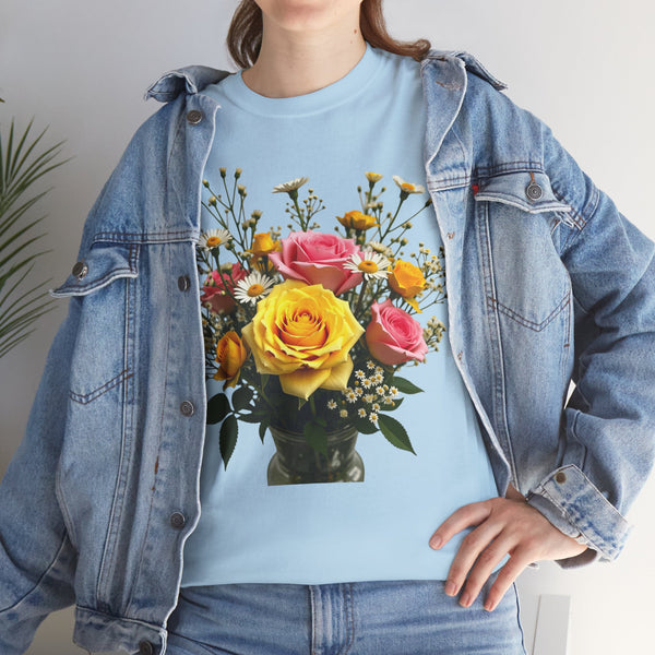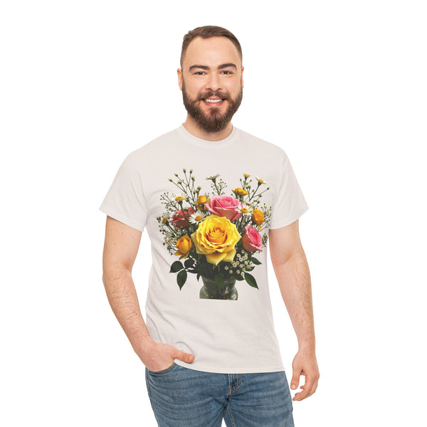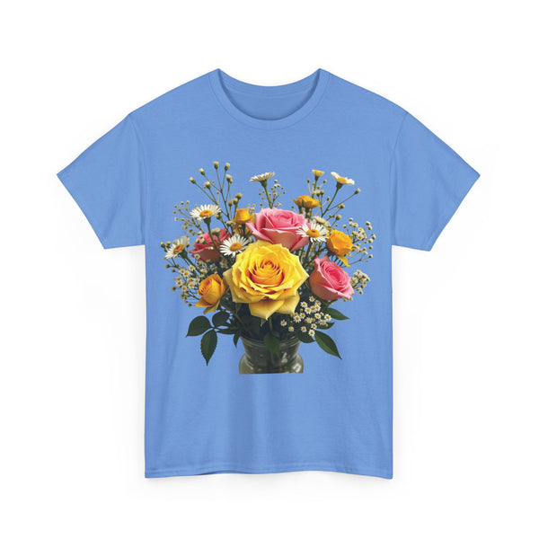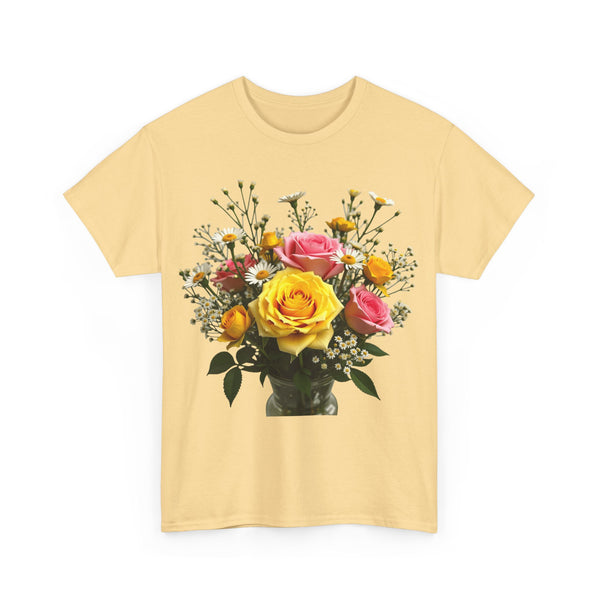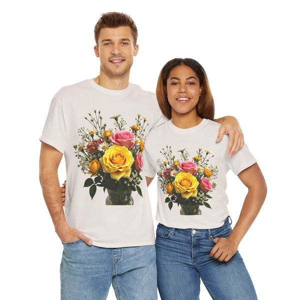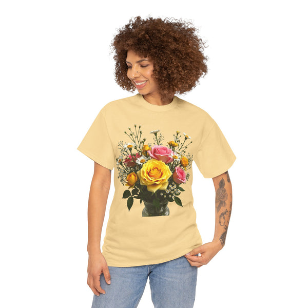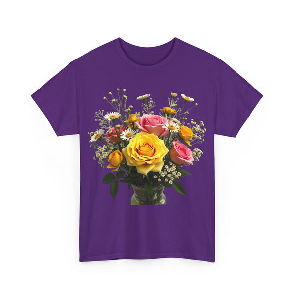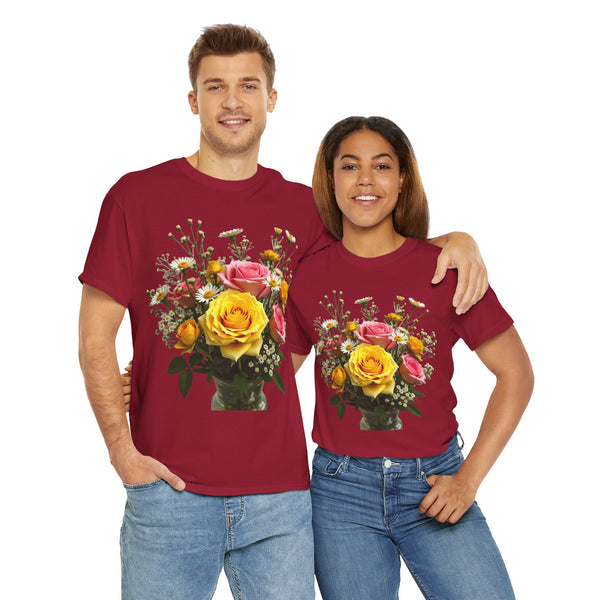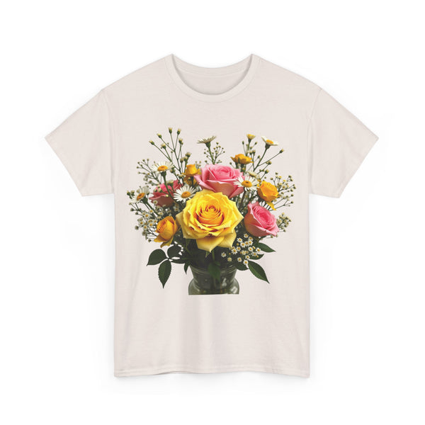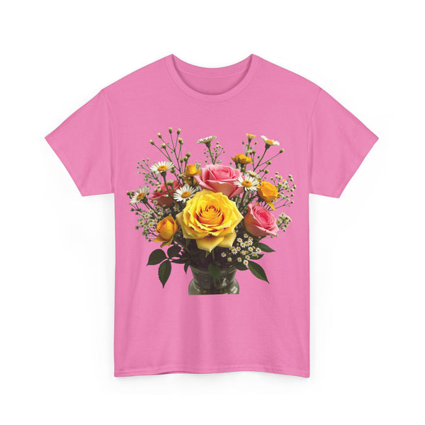 Perfect Fit: This shirt for women has a relaxed fit that flatters every woman. Therefore, no matter if you prefer jeans, skirts or shorts, you will look effortlessly stylish. Versatile Style: This floral shirt will elevate your look be it brunch, running a few errands or spending a casual day out. Ensure to clear a spot for this masterpiece in your wardrobe. The Wildflower and Pink/Yellow Roses Graphic T Shirt for women allows you to connect with nature adding a bit of it to your daily outfits. Shop now from our collection of ladies graphic tees to get the perfect look!