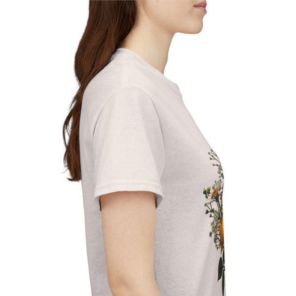 Isn’t comfort and style the ultimate combination? This floral top is a wardrobe essential unlike any other! This wildflower graphic is beautifully accentuated with pink and yellow roses. Ladies, these graphic tees for women are a go to if you prefer looking effortlessly stylish. Reasons To Love It Soft And Breathable Fabric: The material of this womens short sleeve T Shirt is soft and relaxing, making it perfect for everyday use and any occasion. Floral Elegance: The feminine touch of the elegant and trendy floral design is equally bold and subtle in this womens T shirt.