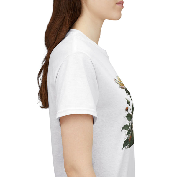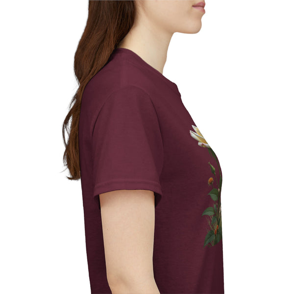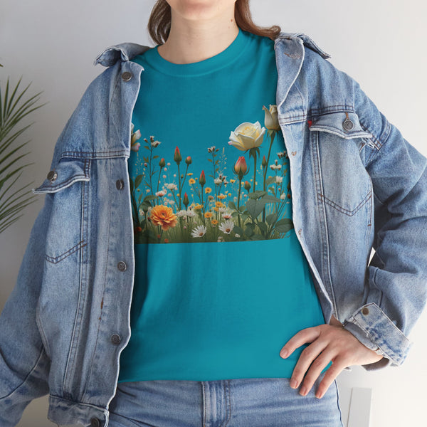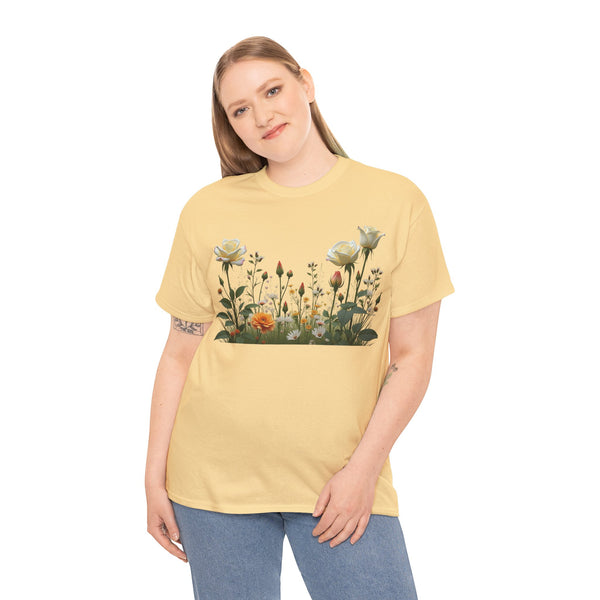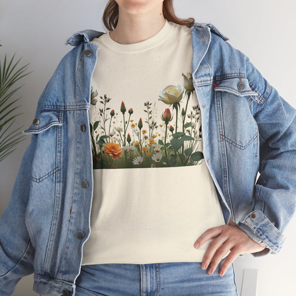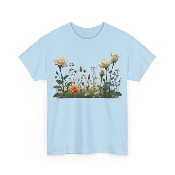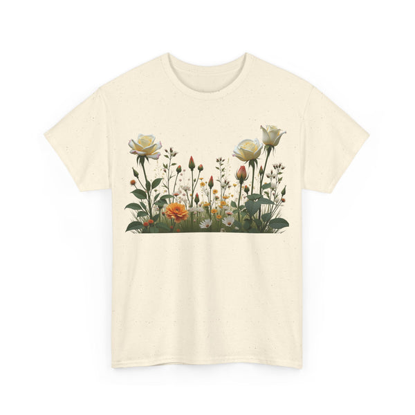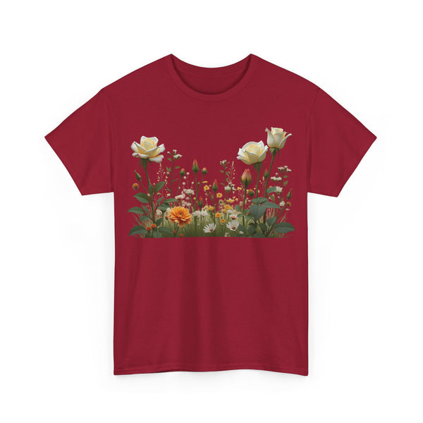 Perfect Fit: This shirt for women has a relaxed fit that flatters every woman. Therefore, no matter if you prefer jeans, skirts or shorts, you will look effortlessly stylish. Versatile Style: This floral shirt will elevate your look be it brunch, running a few errands or spending a casual day out. Ensure to clear a spot for this masterpiece in your wardrobe. The Wildflower and White Roses Graphic T Shirt for women allows you to connect with nature adding a bit of it to your daily outfits. Shop now from our collection of ladies graphic tees to get the perfect look!
